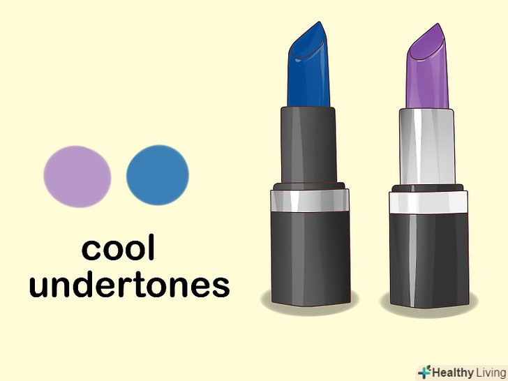 Якщо у вас холодний тон шкіри, спробуйте використовувати помаду синюватих або фіолетових відтінків. наприклад, зупиніть вибір на помаді синьо-червоного або фіолетово-коричневого відтінку, або кольору фуксії. Уникайте помаранчевих і занадто блідих відтінків, так як з ними ви будете блякло виглядати. [15]