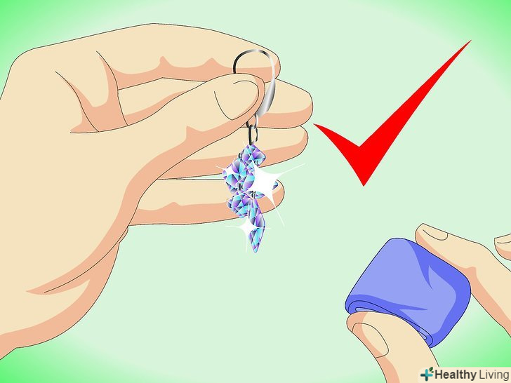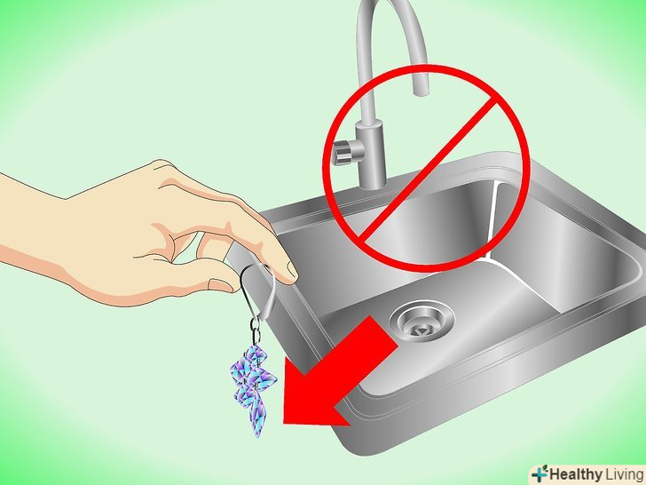 Зніміть Ваші прикраси, коли збираєтеся плавати, приймати душ або ванну або мити руки з милом. Хлор, який часто присутній у воді, може пошкодити верхній захисний шар кристала. Мило та інші продукти особистої гігієни можуть також пошкодити захисний верхній шар і зруйнувати структуру кристала. [13] [14]