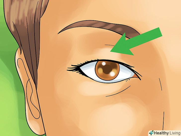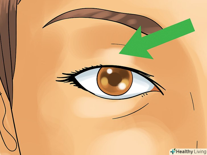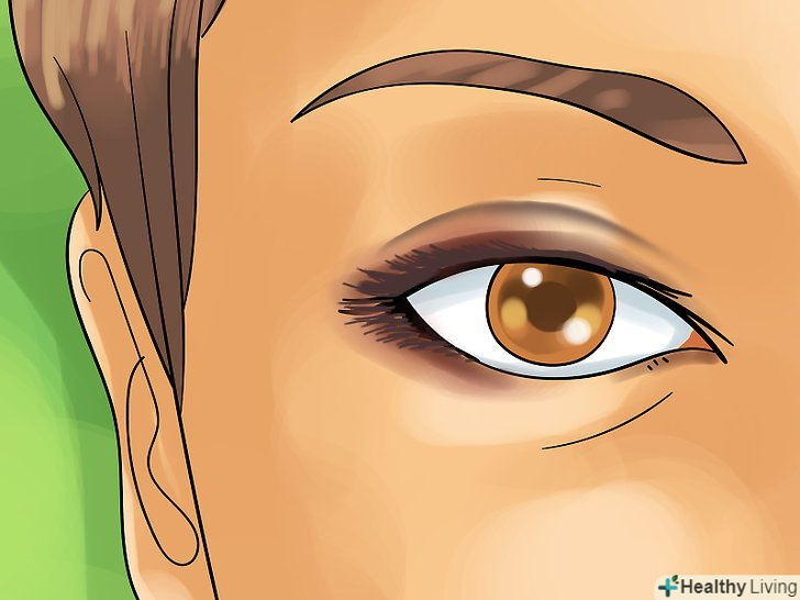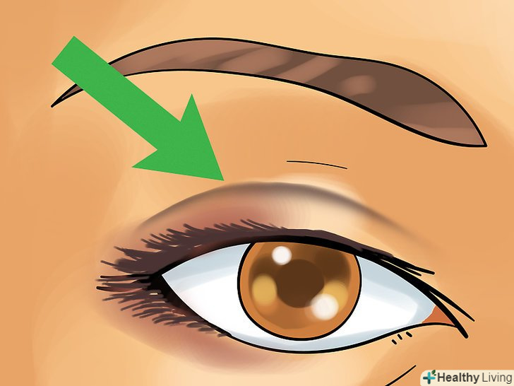 Нанесіть тіні над і під око. наносячи тіні на повіку, розтушуйте від центру вгору і назовні. Зробіть це у формі крила, яке розширюється до лінії брів. [22]