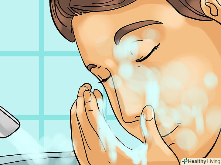 Добре вимийте область навколо очей. перш ніж наносити стрічку, переконайтеся, що область навколо очей чиста. Ви можете нанести макіяж після того, як використовуєте клейку стрічку для повік. [3]- Деякі марки клейкої стрічки для повік можуть триматися краще, якщо ви спочатку завдасте невелику кількість тіней. Експериментуйте з різними марками і знайдіть свою. [4]