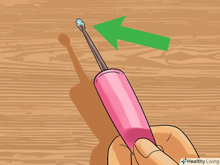 Нанесіть невелику кількість клею на пензлик. приберіть зайвий клей з пензлика. Використовуйте достатню кількість клею. Якщо на пензлику буде занадто багато клею, він може потрапити в око. [16]