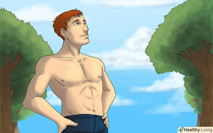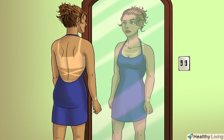 Роздягніться для вдалого засмаги. якщо ви не хочете візерункового засмаги, одягніть купальник, який одягаєте, коли йдете плавати! Якщо одягнете той же купальник, то у вас буде гладкий, рівний загар по всій шкірі до купальника.- Зніміть купальник, якщо можете. Єдине, що може бути краще мінімуму світлих смужок, це відсутність світлих смужок!