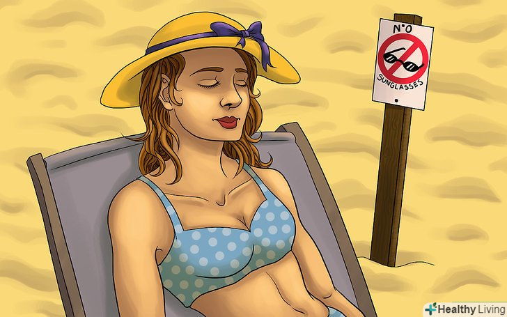 Захищайте очі. вони теж можуть згоріти. Загоряючи, краще надягати капелюх або просто закривати очі, ніж надягати сонцезахисні окуляри. Яскраве світло, потрапляючи на оптичний нерв, стимулює роботу гіпоталамуса, який в свою чергу виробляє меланін, що сприяє досягненню більш глибокого засмаги.