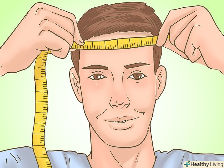 Виміряйте найширшу частину чола. зазвичай вона розташована десь посередині між бровами і лінією росту волосся вгорі. Виміряйте ширину чола від лінії росту волосся з одного боку до іншого. Запишіть отриману мірку. [4]Відповідь фахівцяПитанняКористувач wikiHow запитує: " коли я вимірюю ширину обличчя, чи потрібно міряти до самої лінії росту волосся?»