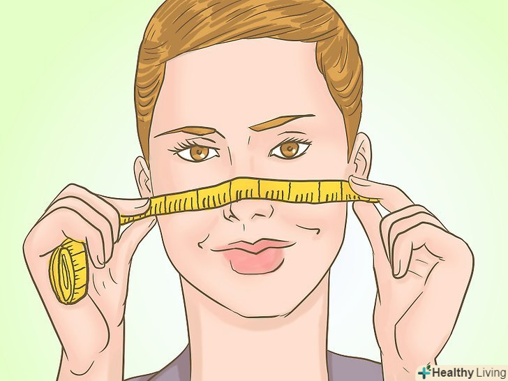 Візьміть сантиметрову стрічку. щоб виміряти власне обличчя, вам буде потрібно сантиметрова стрічка, якою зазвичай користуються кравці. Її можна без зусиль придбати в більшості магазинів, що торгують товарами для рукоділля. Навіть якщо у вас в руках випадково виявиться стрічка зі шкалою в дюймах, в цьому немає нічого страшного. Важливо лише те, яким чином отримані мірки будуть співвідноситися один з одним, а не їх конкретні значення. [1]