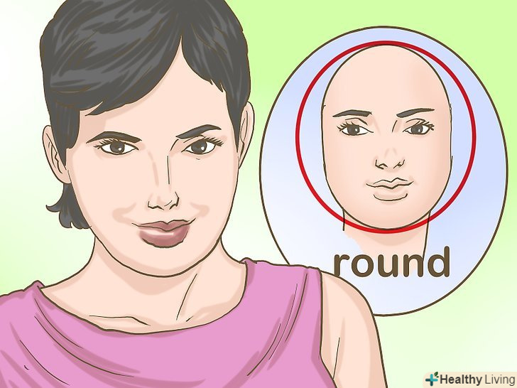 Зверніть увагу на широкі вилиці, щоб виявити круглу форму обличчя. вилиці — найширше місце круглого особи, яке при цьому володіє округлими контурами чола і підборіддя. Ще одна характерна ознака круглого особи полягає в тому, що зазвичай воно має однакову висоту (від лінії росту волосся до підборіддя) і ширину (від зовнішнього краю однієї вилиці до іншої). [14]