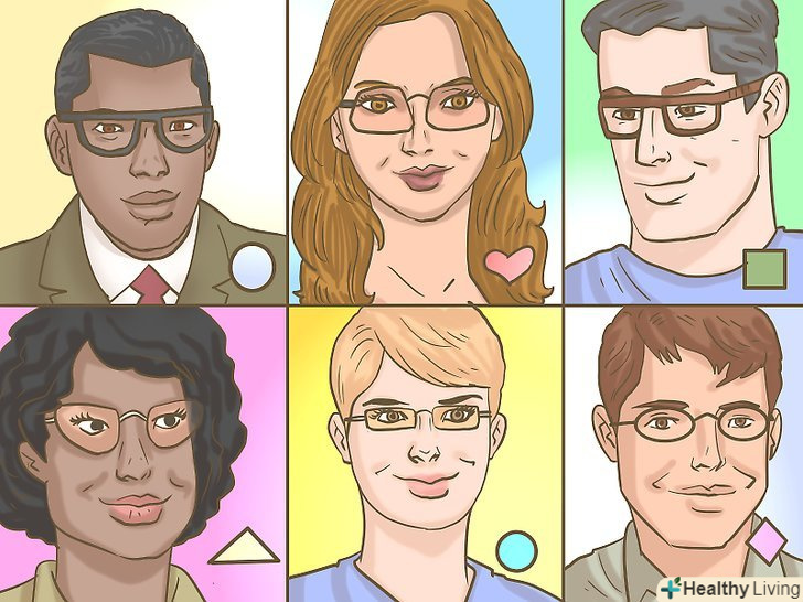 Якщо ви носите окуляри, підберіть собі таку оправу, яка дозволить збалансувати форму обличчя. окуляри здатні злегка змінювати форму обличчя візуально. Якщо ви носите окуляри, підберіть собі таку оправу, яка буде доповнювати собою ваше обличчя, а не підкреслювати і без того явні його особливості. Для цього скористайтеся нижчезазначеними рекомендаціями. [11]- Збережіть загальний баланс овального обличчя оправою, яка буде відповідати ширині особи.