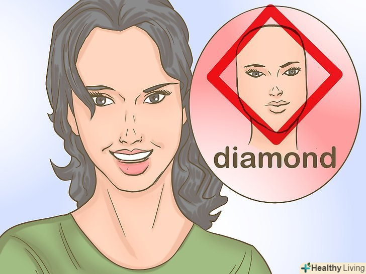 Зверніть увагу на вузький лоб і таку ж вузьку лінію підборіддя, щоб виявити ромбовидне обличчя. якщо найширша частина вашого обличчя знаходиться на рівні вилиць, і при цьому воно звужується у напрямку до чола і підборіддя, то у вас ромбовидне обличчя. [16]