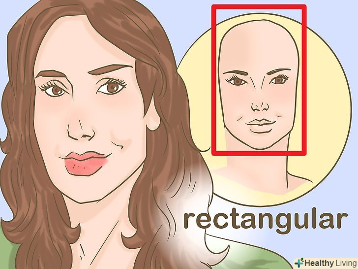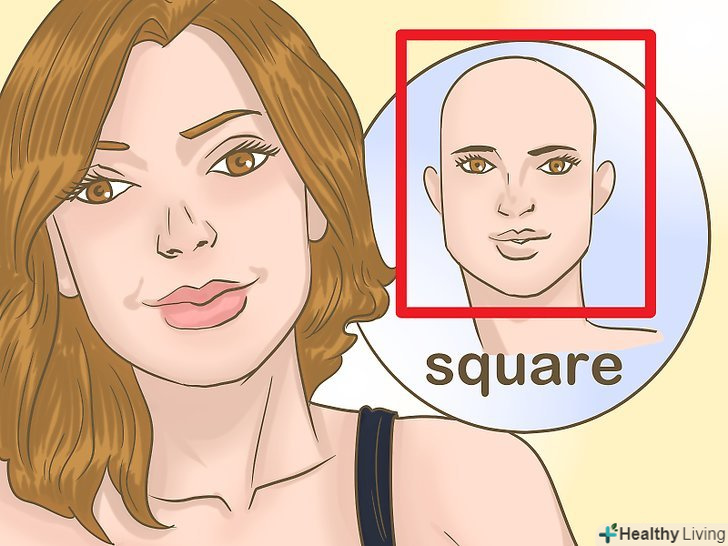 Зверніть увагу на поєднання витягнутого обличчя і квадратної лінії щелепи у прямокутного особи. за аналогією з круглими обличчями, квадратні обличчя зазвичай мають приблизно однакову висоту і ширину. Якщо ж у вас квадратна лінія щелепи, але витягнуте обличчя, то ваша форма обличчя, скоріше, прямокутна, а не квадратна. [19]