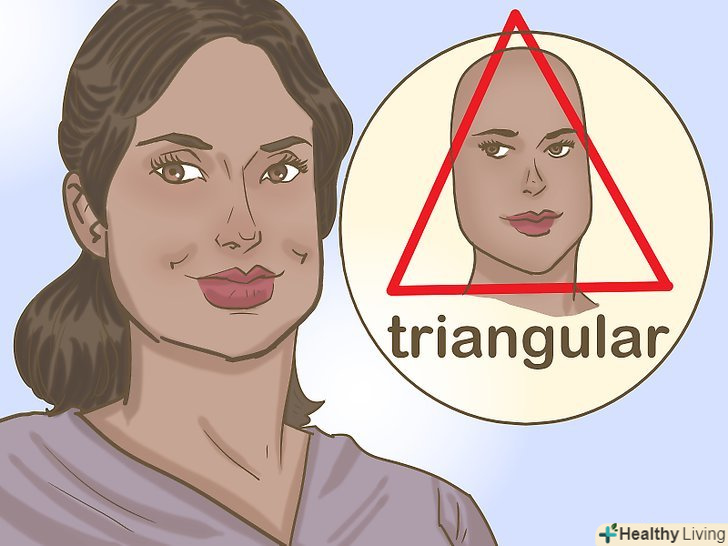 Визначте трикутну форму обличчя по більш широкій лінії нижньої щелепи. квадратна лінія щелепи також може бути окремою рисою трикутного особи (звужується догори). Якщо ваші вилиці і лоб істотно вужчі, ніж лінія щелепи, то у вас трикутне обличчя. [20]