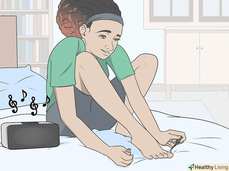 Балуйте себе. якщо ви будете виділяти час на те, щоб розслабитися, це допоможе вам розвинути впевненість в собі і відволіктися, а це підтримає ваш позитивний настрій.- Відчуйте себе красивою до кінчиків пальців ніг, роблячи домашній педикюр. Робіть що завгодно! Одягніть одне або два кільця для пальців ніг. Накрасьте кожен ніготь різним кольором, використовуйте блискітки або спробуйте відтінок, який ви не готові використовувати на руках.
