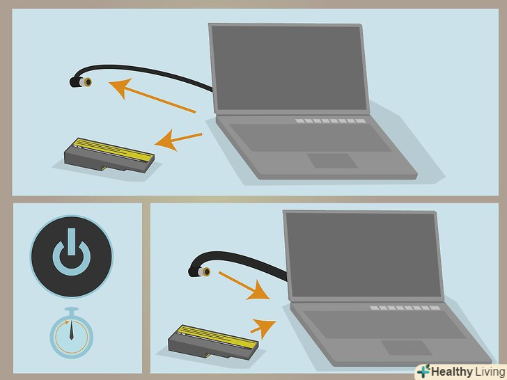Скиньте Налаштування системи, відключивши блок живлення і витягнувши батарею.після цього затисніть кнопку включення ноутбука на 60 секунд. Тепер можна вставити акумуляторну батарею в ноутбук, підключити блок живлення і включити ноутбук. Це може усунути деякі проблеми з зарядкою акумулятора.