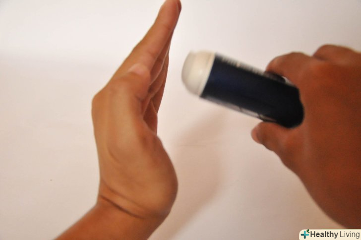 Нанесіть дезодорант на область пахв, особливо на потові залози.