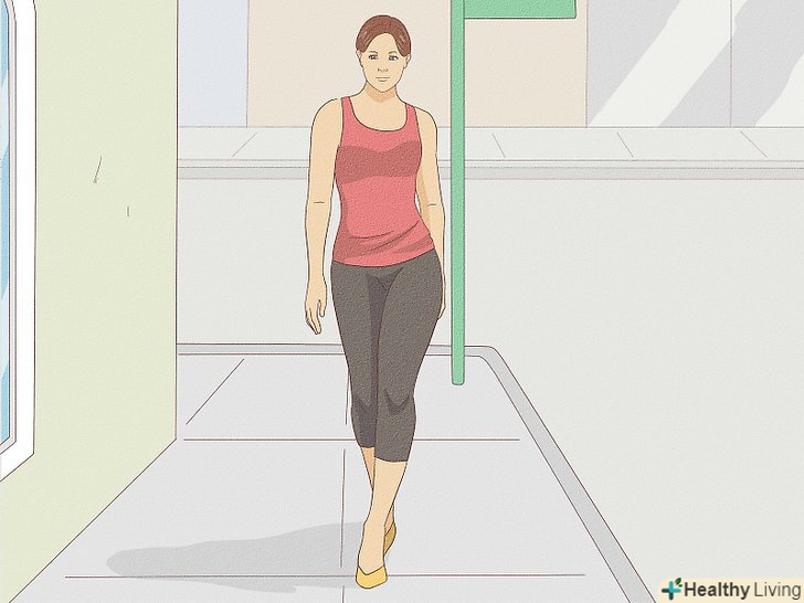 Похитуйте стегнами. похитування стегнами під час ходьби привертає увагу до цієї області і надає жіночне чарівність, яке завжди привертає чоловічу увагу. Тримайте спину прямо і відведіть плечі вниз і назад. Розслабте тіло. Поставте одну ногу перед Другою під час ходьби, руками не розмахуйте — все повинно бути природно. Ви можете спеціально похитувати стегнами під час ходьби, але не перестарайтеся. Якщо ви переборщите, це буде виглядати комічно.- Щоб посилити ефект, надіньте туфлі. Завдяки каблукам ваші стегна будуть погойдуватися без вашої участі.