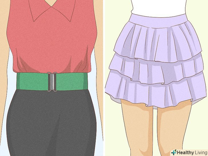 - Купуйте спідниці з оборками або шарами тканини, щоб ваші стегна виглядали ширше.