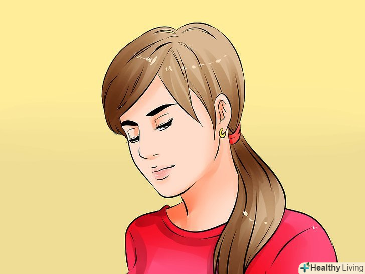 Робіть вільні хвости і коси. якщо у вас довге волосся, зберіть їх у хвіст, але не затягуйте, щоб вони могли закрити ваші вуха. Зробити хвіст або косу на одну сторону – ще один варіант цього методу.- Не затягуйте хвіст і не робіть його високим.