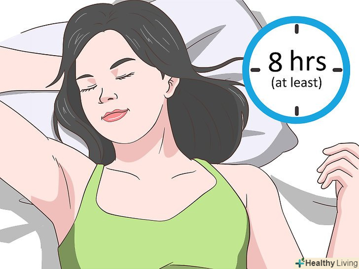 Відведіть на сон як мінімум 8 годин. на повноцінний сон часто не вистачає часу в нашому сучасному житті. Це погано, адже його недолік прискорює процес старіння і позбавляє тіло його природної сили. Він грає дуже важливу роль, достатня кількість відпочинку може куди ефективніше поліпшити ваш зовнішній вигляд, ніж купа косметики. [2]- Видаляйте макіяж перед сном. В іншому випадку це може призвести до подразнення шкіри. [3]