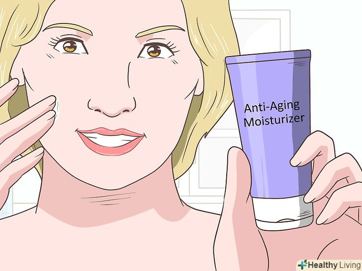 Застосовуйте зволожуючий крем проти старіння. з часом ваша шкіра буде змінюватися, і це неминуче. Це природне явище і в цьому немає нічого поганого, хоча багатьох жінок зовсім не турбує бляклий колір обличчя і зморшки, які з'являються в результаті цього процесу. Антивікові креми і зволожувачі спеціально розроблені для боротьби з цими проблемами. [9] якщо вікові зміни шкіри Вас турбують, придбайте і застосовуйте подібного роду продукти відповідно до інструкції.- Деякі процеси старіння можна уповільнити за допомогою правильного харчування і хорошого сну.