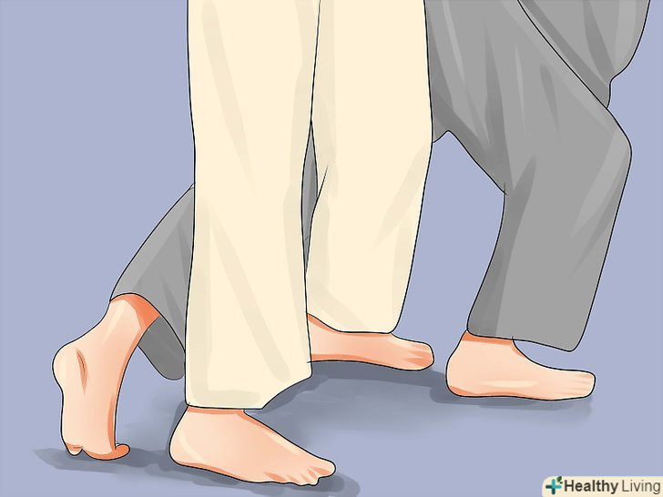 - Наступіть атакуючому на ногу. Зробіть це миттєво швидко і точно. При правильному виконанні цього трюку нападнику буде боляче, а цього буде достатньо для того, щоб він послабив хватку, дозволяючи вам вирватися.