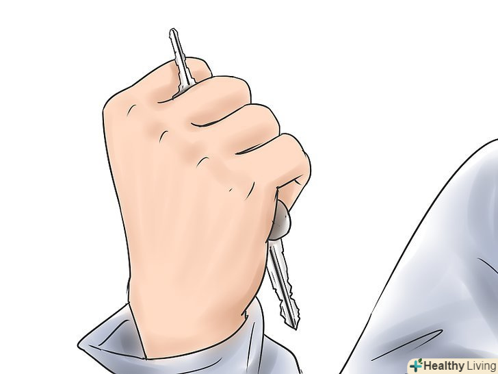 Опинившись на вулиці в темний час доби, прийміть превентивні заходи. Якщо ви йдете по порожній парковці або темній вулиці, помістіть ключі між пальців; стисніть їх в міцну хватку, якщо зустріли незнайомого чоловіка. Якщо він слідує за вами, шукайте працюючі магазини або будь-які заклади, в яких ви могли б отримати допомогу. Якщо ви плануєте використовувати засоби захисту, ви повинні бути впевнені, що вони працюватимуть (у будь-якому кліматі, за будь-якої погоди тощо).- Як засіб захисту рекомендуємо використовувати газовий балончик. Виберіть такий, який діє потужно, довго і точно. Хороший спрей може бути неймовірно травматичним для зловмисника.