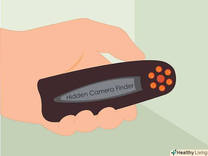 - Сьогодні можна придбати різні прилади для пошуку прихованих камер. Невеликий апарат виробляє високочастотний червоний світловий сигнал, за допомогою якого потрібно досліджувати приміщення. Таке світло буде відбиватися від лінз, чіпів або джерел інфрачервоного світла. [12]