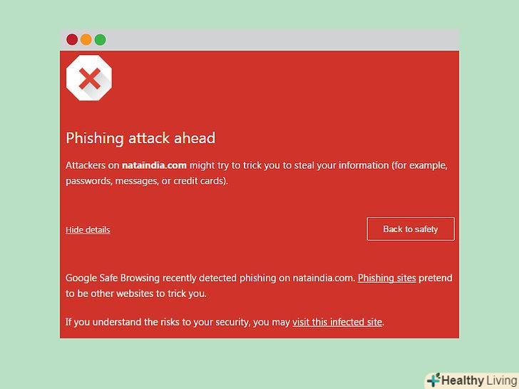 Завантаження з ненадійних сайтів. при завантаженні даних зі сторінок в Інтернеті завжди використовуйте систему безпеки комп'ютера для перевірки надійності сайту. При завантаженні файлів з сайтів, зазначених як небезпечні, існує ризик надати доступ до Вашого комп'ютера стороннім особам. [3]