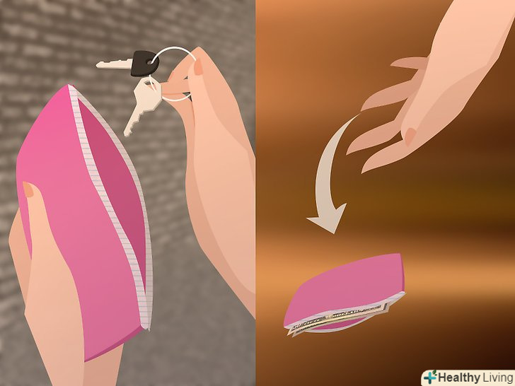 Дістаньте ключі з кишені або сумочки. щільно стисніть їх в руці, якщо у вас немає мобільного телефону, а людина продовжує переслідувати вас. Ключі стануть хорошим засобом оборони, якщо вам доведеться захищатися. Також не завадить газовий балончик або будь-яке дозволене зброю. Викиньте гаманець і продовжуйте бігти (можливо, метою зловмисника є ваші гроші і цінні речі). Якщо ви сумніваєтеся, то подумайте, чи варто ризикувати заради нього життям?
