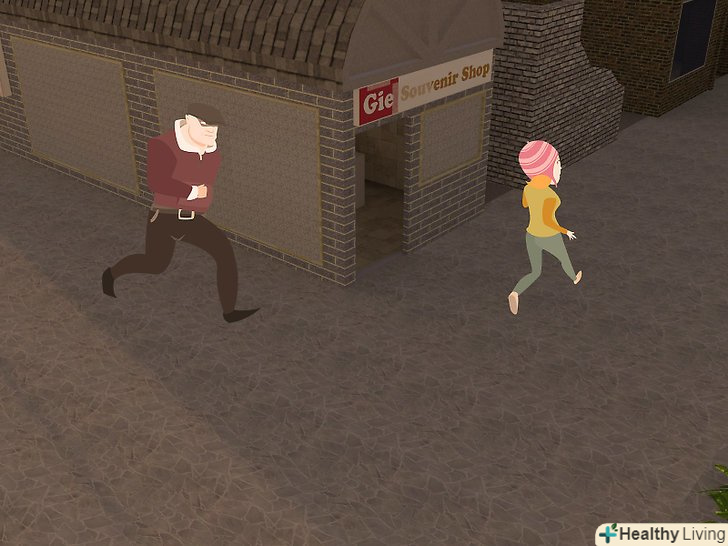 Тікайте геть. почніть бігти, якщо ви в хорошій формі. Збільшуйте відрив від ймовірного зловмисника. Як сказано вище, краще бігти туди, де напевно будуть люди.