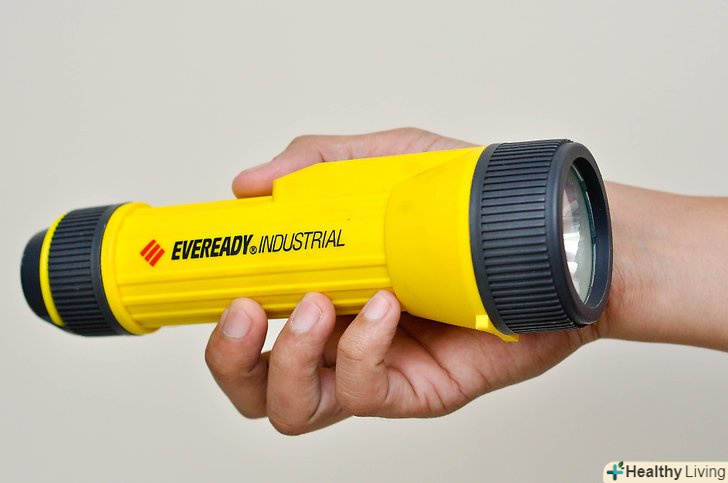 Упакуйте маленький ліхтарик . знайдіть, принаймні, маленький або середній ручний або головний ліхтарик і переконайтеся, що у нього нові батарейки. Ліхтарики типу Maglite дуже міцні, але вони набагато важче алюмінієвих. Ліхтарі більшого розміру можна використовувати як оборонну зброю, якщо знадобиться. Вирішіть, чи зможете ви витримати вагу і чи достатньо місця в рюкзаку. Ви можете набрати батарейок повного розміру (D типу) якщо є місце і ви можете подужати вагу. Ви не отримаєте попередження про масове відключення електрики або евакуації.- Пошукайте маленький або середній ліхтар, що працює на пальчикових або «С» батарейках. Це залежить від того як багато у вас є місця, ваших потреб і яку вагу ви зможете витримати. Гарні легкі пластикові ліхтарики. Не потрібно купувати дорогий, але переконайтеся, що він працює.