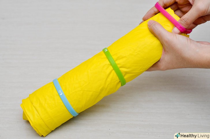 - Також ви можете затягнути його товстими гумками для волосся. Ще вони стануть в нагоді для того, щоб зібрати довге волосся під час екстрених ситуацій. (Якщо волосся потраплять в очі, то це буде перешкоджати видимості, на додачу до подразнення.)