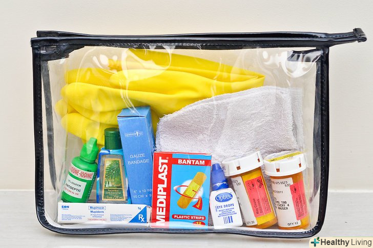 - Завжди будьте впевнені в тому, що у вашому комплекті є латексні або вінілові рукавички. Бактерії, що переносяться кров'ю, реальні, і не кожен попереджений або знає про інфекції або проблеми зі здоров'ям. Ви можете зіткнутися з потерпілими або надавати допомогу кому-небудь за допомогою своєї аптечки. Не забувайте надіти рукавички. Вони можуть стати в нагоді, якщо ви самі повинні надати собі допомогу і у вас брудні руки. Це зменшить ризик зараження і зробить процес надання першої допомоги більш чистим.