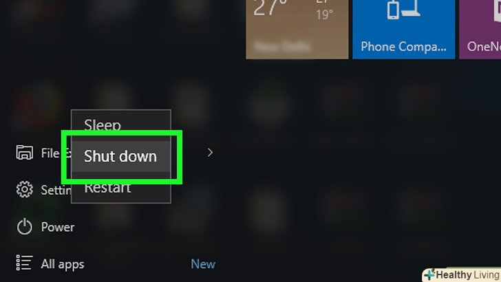 Вимкніть комп'ютер. Для цього відкрийте меню «Пуск», а потім натисніть "живлення"