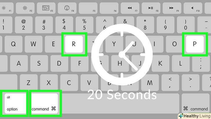 Утримуйте клавіші до тих пір, поки не почуєте другий сигнал запуску комп'ютера.це займе близько 20 секунд. Протягом цього часу вам може здатися, що комп'ютер перезавантажився.[1]- Якщо ви не чуєте звуків запуску, просто дочекайтеся, коли логотип Apple з'явиться на екрані вдруге.