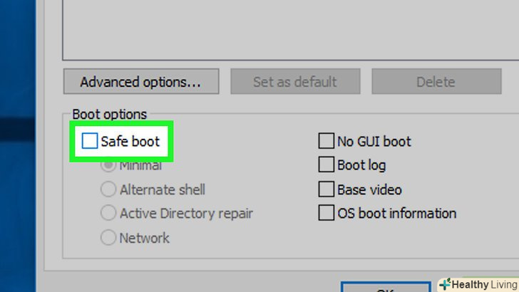 Приберіть прапорець у "Безпечний режим". ця опція знаходиться посередині лівого боку вікна. Якщо прапорця немає, завантаження в безпечному режимі вже відключена.