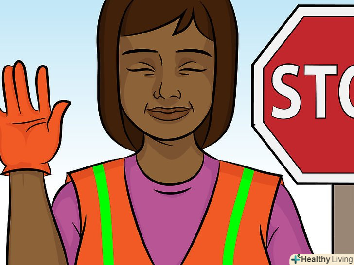 Одягайте відповідний одяг і взуття. Запам'ятайте, що потрібно надягати зручне взуття та одяг яскравих кольорів. В яскравому одязі вас легше буде помітити проїжджаючим повз машинам.- Восени і взимку не забувайте одягатися тепло. Вам потрібно зберегти тепло, поки ви будете йти до школи. [16]