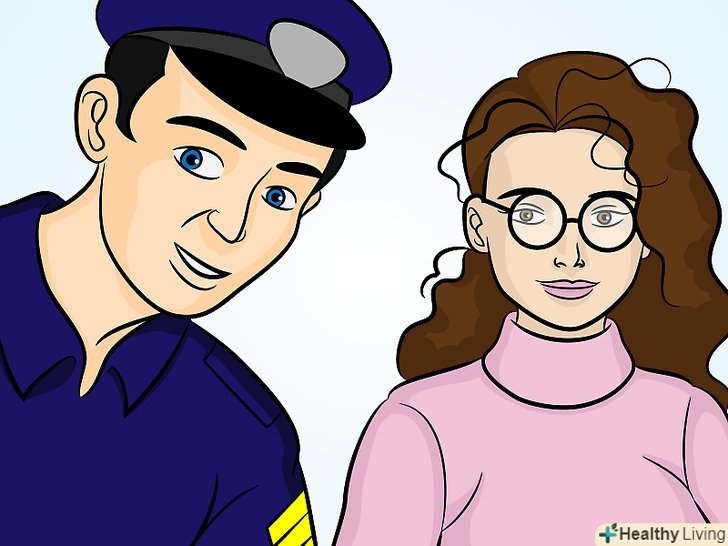 Не спілкуйтеся з підозрілими незнайомцями. [20] незнайомець – це хтось, кого ви не знаєте. Незнайомці не погані і не хороші, просто ви їх не знаєте. Ви повинні бути уважні, якщо перебуваєте поблизу від незнайомця, який виглядає підозрілим або небезпечним, а ще краще уникайте таких людей, перейшовши на іншу сторону вулиці.- Якщо незнайомець наближається до вас, і вам стає не по собі, потрібно сказати "Ні" і бігти від нього подалі. Потрібно голосно кричати, коли ви намагаєтеся втекти. Потім знайдіть дорослого і негайно розкажіть йому про те, що з вами сталося. Цей спосіб захисту називається “Говори " ні!". біжи, кричи, розповідай". [21]