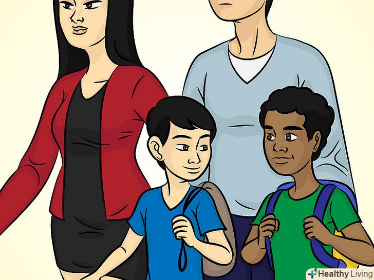 Ходіть до школи з другом, який живе по сусідству, і його батьками. Запитайте своїх батьків, чи можна вам буде ходити в школу разом з другом-сусідом і його батьками. [6] якщо ваші батьки зайняті вранці, для вас буде краще ходити в школу з одним з друзів, що живуть поблизу, і його батьками. Тільки спочатку обов'язково запитайте дозволу у своїх батьків.