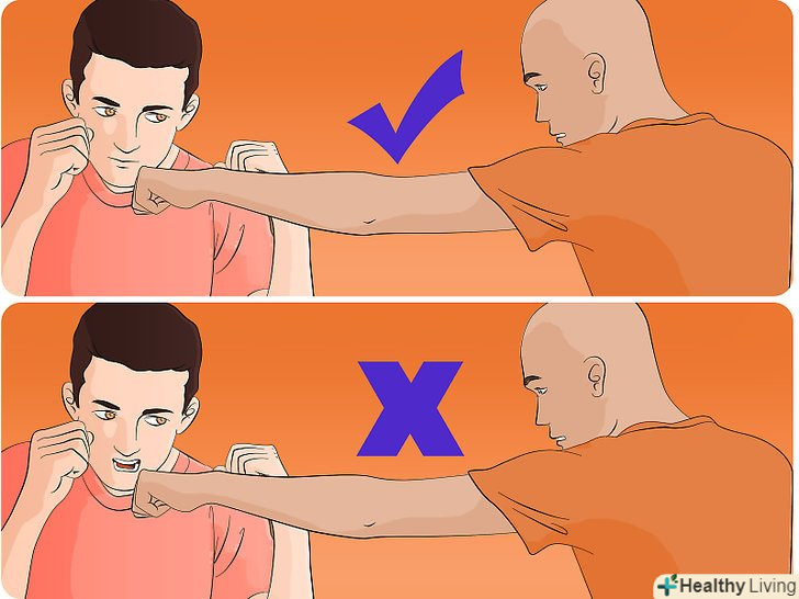 - Як тільки можливо-уникайте ударів! Удар може призвести до надзвичайно травматичного пошкодження з наслідками для подальшого життя, таких як неврологічні пошкодження, що залишилися рубці, переломи кісток, і в крайніх випадках навіть до смерті. Проте, якщо ви перебуваєте в ситуації, в якій найімовірніше вас вдарять кулаком, не враховуйте це, поки конфронтація не буде закінчена.
