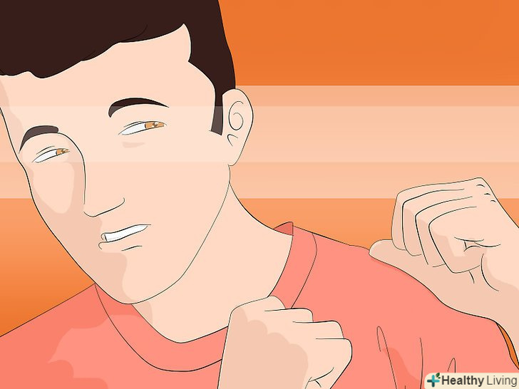 Постійно стежте за нападником. [1] Тримайте зоровий контакт і зверніть увагу на те, куди спрямований його або її погляд, так як люди зазвичай дивляться на ціль, перш ніж вдарити. Це дає вам тонкі натяки на те, де удар може бути нанесений, і ви можете ухилитися від нього.- Якщо ви думаєте, що злякаєтеся або розгубитеся, дивлячись в очі людини, подивіться на сонячне сплетіння. Деякі люди роблять зоровий контакт спеціально для того, щоб відвернути противника.