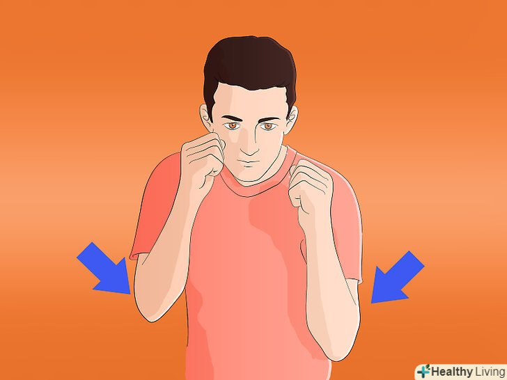 Тримайте лікті притиснутими до корпусу. Ви повинні захистити ваші органи, які можуть бути серйозно пошкоджені точними ударами в корпус. Ваші плечі, грудна клітка, руки і кулаки можуть витримати сильні удари з мінімальними ушкодженнями. Підставте ці цілі противнику, захищаючи ваші вразливі місця. Лікті повинні бути притиснутими до боків, але досить вільними, щоб пересуватися і блокувати удар, коли він буде завдано противником.