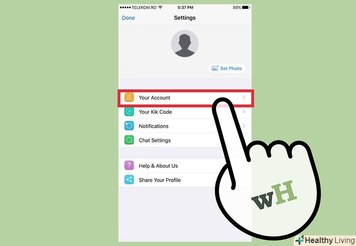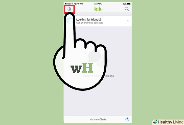Торкніться шестірні у верхньому правому куті Kik, щоб відобразити Налаштування.