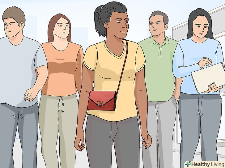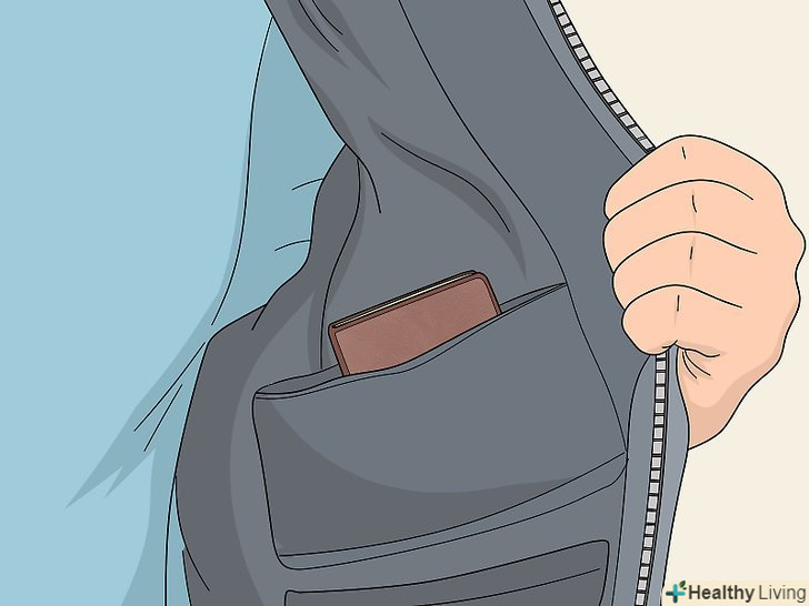 Зіткнувшись з ким-небудь, поплескайте себе по кишенях, щоб переконатися, що телефон і гаманець на місці. деякі злодії нібито випадково стикаються з людьми, коли ті йдуть по вулиці або заходять в автобус. У момент зіткнення вони просовують руку у відкриту кишеню в надії витягнути що-небудь цінне. Якщо в вас врізався незнайомий вам людина, перевірте, чи всі цінні речі на місці. [14]- Намагайтеся не стикатися з іншими людьми в натовпі або в тісних місцях. Злодії часто працюють в натовпі, де їх складно помітити. Міцно тримайте свої речі і будьте пильні в автобусі, в поїзді або в багатолюдному місці в місті.