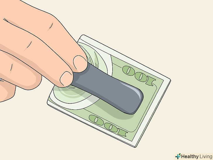 Оберніть гаманець гумкою, щоб вкрасти його було складніше. візьміть звичайну канцелярську гумку і надіньте її на середину гаманця. Опустіть гаманець глибше в кишеню. Якщо злодій спробує потягнути за гаманець, витягнути його з легкістю йому не вдасться. Ви помітите, що хтось намагається вас пограбувати. [2]- Якщо у вас є вибір, використовуйте липучку або користуйтеся гаманцем з тканини, а не з гладкої шкіри. Тканинні гаманці набагато складніше витягнути непомітно.