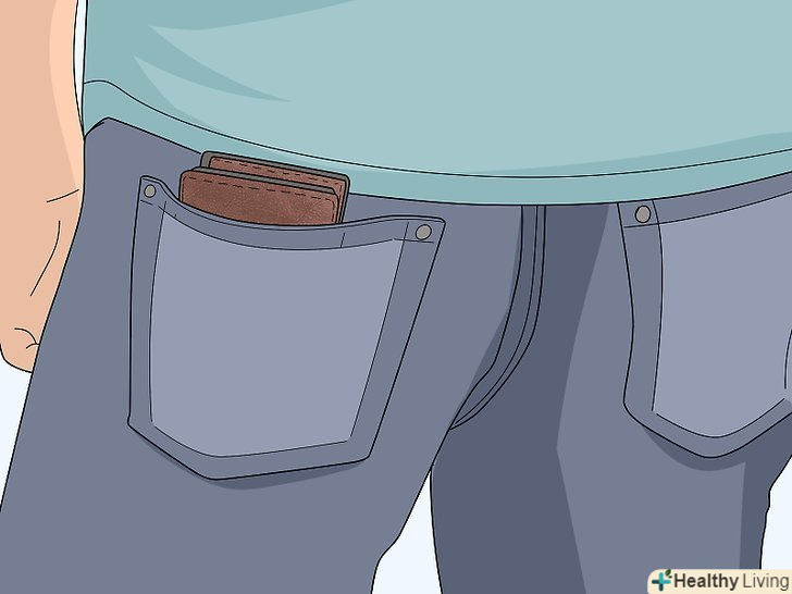 Тримайте гаманець у передній кишені штанів. Якщо ви звикли тримати гаманець в задній кишені, звідки його легко дістати, перемістіть його вперед. Кишеньковому злодієві буде набагато складніше витягнути гаманець, паспорт або гроші, якщо вони будуть спереду. [1]- При ходьбі речі можуть злегка висовуватися з кишень. Через це речі з задніх кишень витягнути набагато легше.
