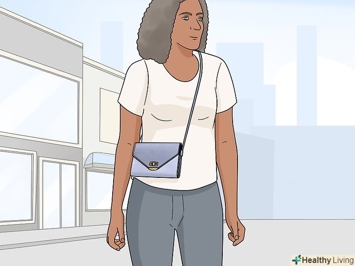 Вкоротите ручки на своїй сумці, щоб вона була ближче до вас. щоб ніхто не вирвав сумку у вас з рук, тримайте її якомога ближче до тіла. Укоротите ручки на сумці і рюкзаку, щоб річ була ближче до тіла. Завдяки цьому іншим буде складніше пробратися в вашу сумку, якщо ви в дорозі. [7]- Якщо ви хочете максимально захистити свою сумку, тримайте її на грудях і не заводьте за спину.