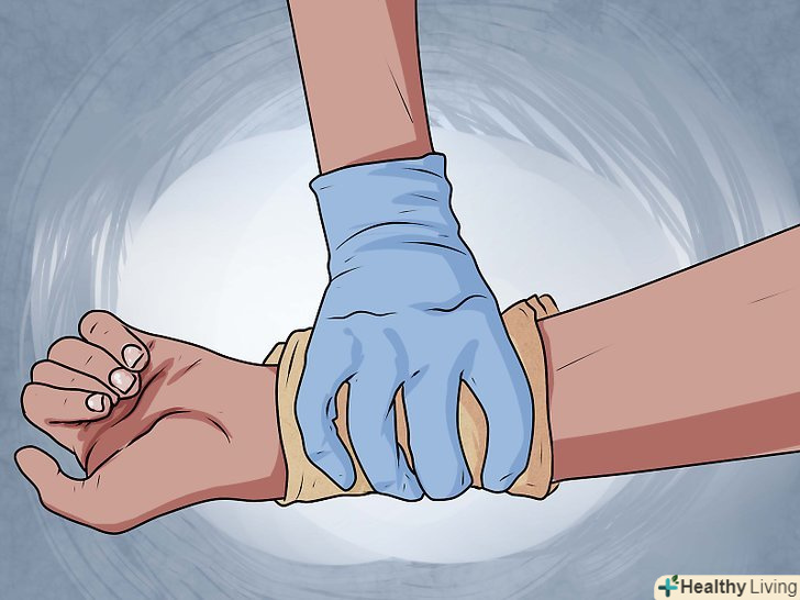 Обробіть рани. якщо вас покусала собака, вам слід відразу ж обробити навіть найдрібніші рани, оскільки укуси тварини можуть занести інфекцію. Обробляти укуси слід так:- Щоб зупинити незначне кровотеча, накладіть на пошкоджену область легку давить пов'язку з чистої ганчірки або стерильної марлі. Якщо кровотеча сильна або не припиняється після накладення пов'язки, зверніться до медиків.