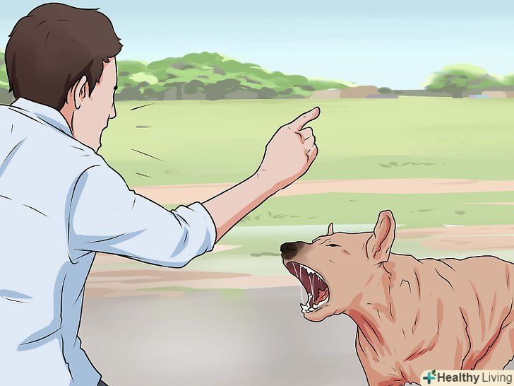 Відбийтеся від нападаючої собаки. якщо собака спробує покусати вас, вам доведеться захищатися. Вдарте собаку в горло, по носі або по потилиці. Це оглушить собаку і дасть вам час на те, щоб втекти. [3]- Можна підвищувати голос. Голосно кличте на допомогу, коли будете відбиватися від собаки. Можливо, вас хто-небудь почує і прийде на допомогу. Не верещіть, оскільки це лише ще більше розлютить собаку.