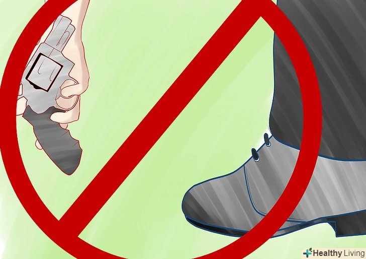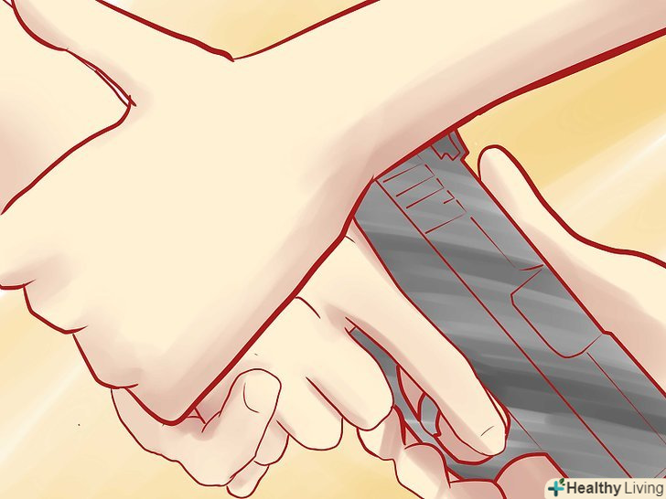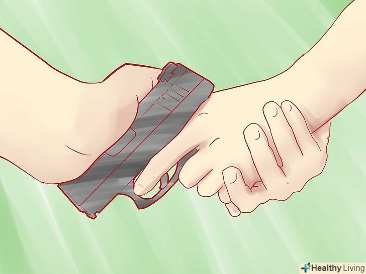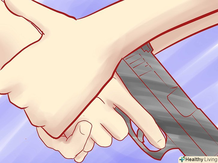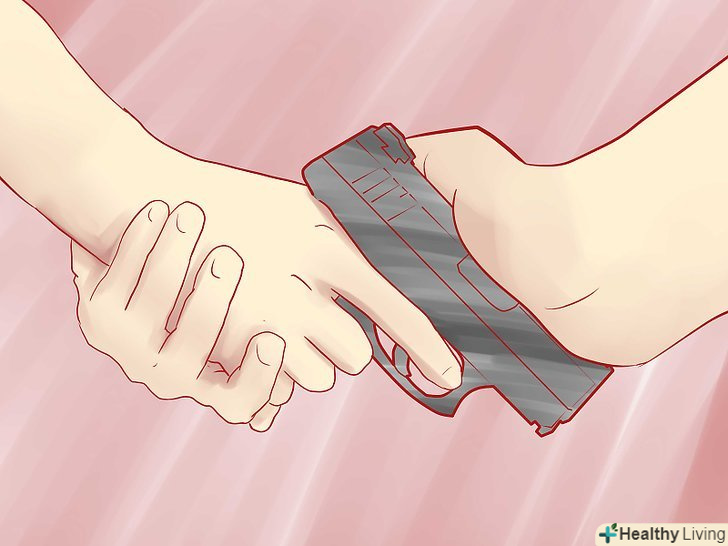- Переконайтеся, що ви не притиснете руку зловмисника так, що пістолет виявиться спрямованим на іншу людину, яка, в свою чергу, може постраждати від пострілу.