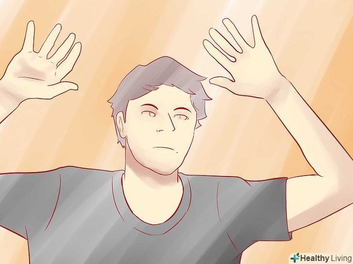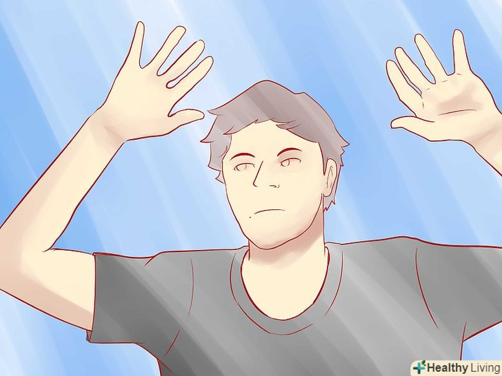 Займіть оборонну або покірну позу. підніміть руки в повітря. Не демонструйте зловмиснику ніякої явної загрози, поки ви не будете готові до атаки.