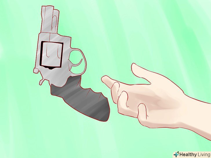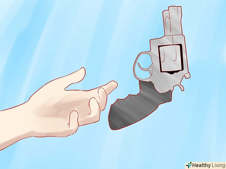 - На пістолеті молоточок повинен бути опущеним, щоб зброя розрядилася. Деякі методи передбачають покласти руку між молотом і рештою пістолетом, хоча, в цілому, це тимчасове рішення, і нападник може швидко вирвати пістолет з вашої руки. Згодом він стане таким же небезпечним, як і раніше, але ще більш роздратованим. Зверніть увагу, що деякі пістолети оснащені внутрішніми вогневими контактами, як Глоки.
